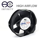 The high speed 172 by 150 by 38 millimeter 115V AC axial fan is housed in die cast aluminum with thermoplastic blades. Containing long life dual ball bearings, the fan can run continuously for 67,000 hours and be mounted in any direction. Has terminal connectors and can be plugged into a standard outlet with a fan power cord, sold separately. Cooltron fans are certified by CE, UL, TUV, and RoHS; and found in various Samsung and Eaton servers and UPS systems.